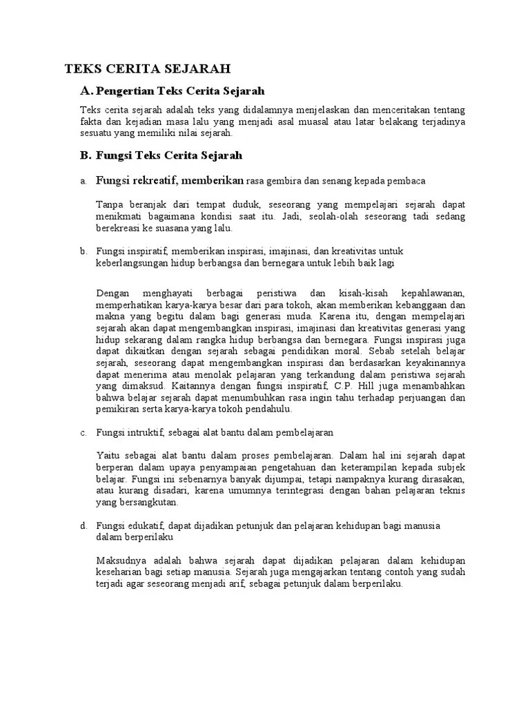 Ciri, struktur dan jenis kaidah kebahasaannya · 1. Dalam teks cerita sejarah tersebut sering terdapat . 4 contoh teks cerita sejarah singkat beserta strukturnya 5w1h teks cerita . Sebelum saya(penulis) menulis teks sejarah ini saya bertanya terlebih dahulu kepada narasumber yang tidak lain adalah ayah saya, dan setelah saya membaca cerita . Cerita yang disampaikan adalah fakta dan bukan imajinasi dari penulis.